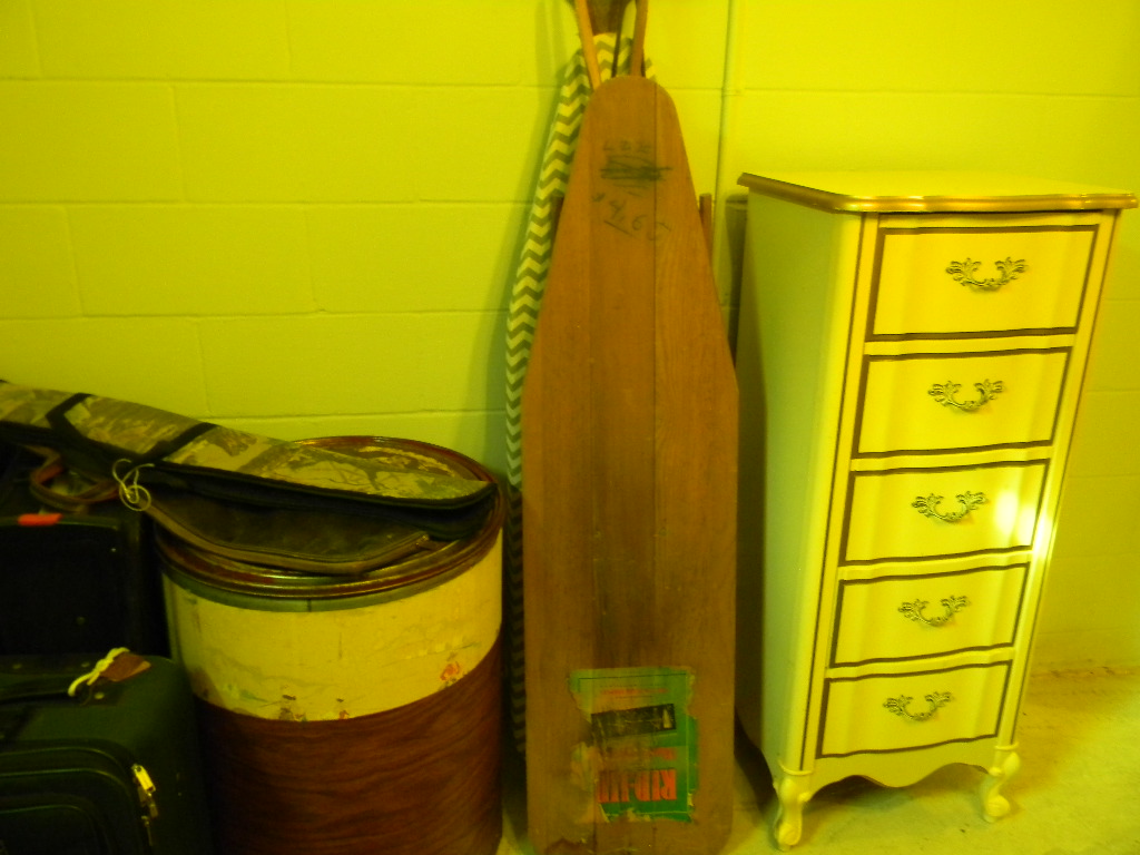Trunk Antique Joems Bros. Furniture Vanity and stool Vandy Redwood Shelf Howard Miller Barwick Collection Grandfather clock Howard Miller Grandfather Chime clock Antique wood rocker Antique Hoosier Kitchen Cabinet Enamelware top Singer Treadle China Hutch Double Bed, twin bed 3,4,5,and 9 drawer dressers Lingerie Chest Foot Stools Bedroom seat 2 Recliners Futon Loveseat Wing chair Antique wood chairs Rocking Recliners Wood gun cabinets Table lamps Knick Knack shelves Bakers racks Wash Stand Mirrors Wood cupboard Sterlite cabinet Drying rack Wood table and chairs Desk, 4 Drawer file Book shelves, Child s wood rocker, school desk Super Scan TV with DVD and 4 hd. stereo built in LG TV 4 pc. Luggage Wood ironing board Necchi sewing machine Music stand, music books Bird cage stand Pro Form XP90 bike Clocks, Motorcycle clock Vintage sled Hula Hoops Shoot the Moon game Advertising thermometers